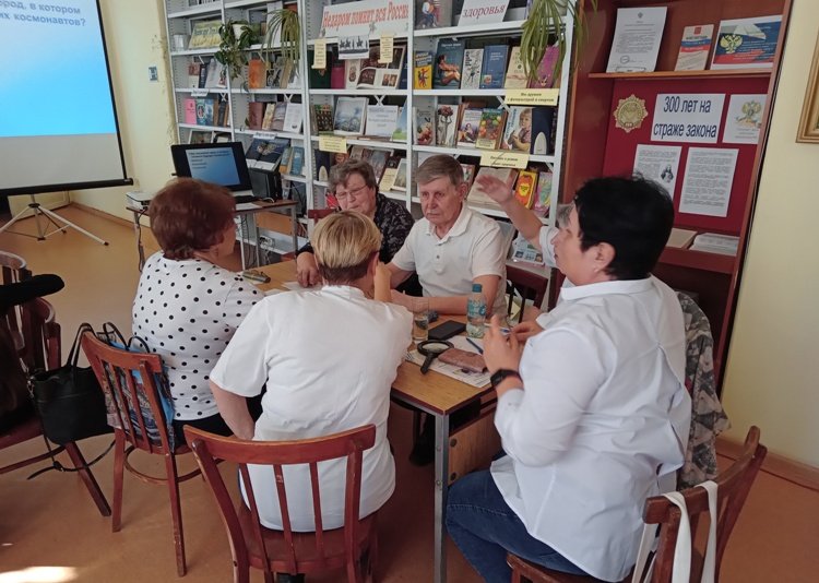 12 апреля в День космонавтики в библиотеке имени Л.Н. Рахманова прошла командная интеллектуальная игра «Эрудиты». В ней приняли участие команды ветеранов «Оптимисты» и «К звездам», возглавляемые капитанами Верой Николаевной Оленевой и Верой Васильевной Рычковой. Игра состояла из 6 туров: «Обо всем на свете», «Здоровый образ жизни», «История», «Год культурного наследия народов РФ», «Литература» и блиц-раунд. Команды определяли флаг страны, разгадывали анаграмму, по картинкам вспоминали басни Крылова, название фильма, по строчкам названия песен, факты из истории и литературы. Участники игры показали эрудицию, смекалку, сообразительность и логику и приятно провели время в хорошей компании. Сложившийся творческий дуэт Елены Элиаури и Раисы Георгиевны Калининой порадовали прекрасным исполнением песен «Отговорила роща золотая», «А он мне нравится», «А черемуха цвела», «Яблоневый вечер», «Расцвела под окошком белоснежная вишня». По результатам раундов с небольшим преимуществом победила команда "К звездм", а по итогам игры победила дружба! Благодарим всех участников за встречу!
